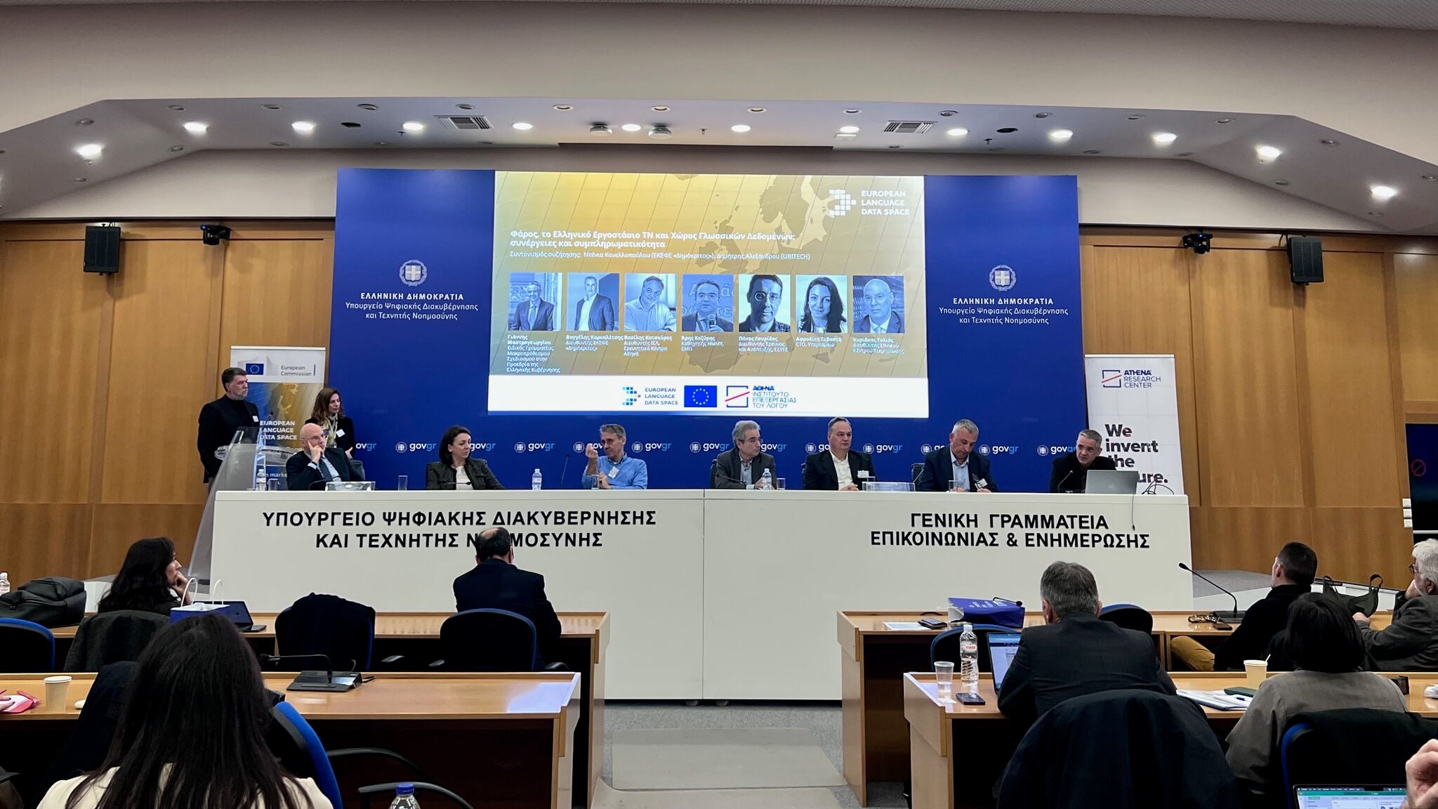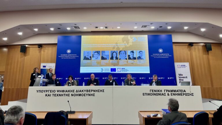 A central part of the programme was the panel discussion “Pharos, the Greek AI Factory: synergies for enabling excellence in Greek AI”, in which representatives from the PHAROS Consortium -V. Karkaletsis, Director of NCSR Demokritos & PHAROS Technical Coordinator, V. Katsouros, Director of the Institute for Language and Speech at Athena Research Center, N. Koziris, Professor at NTUA, P. Louridas, Director of Research and Development at GRNET & Professor at AUEB, A. Sevasti, Chief Technology Officer at Growthfund, and K. Tolias, Director of the National Documentation Centre- took part alongside the Special Secretary for Strategic Foresight at the Government of Greece, Yannis Mastrogeorgiou. During the session, the focus was on PHAROS’ mission, national role and complementarities with the LDS initiative, as well as on opportunities for cooperation, joint actions and synergies to support the growth of Greece’s AI and data innovation ecosystem.