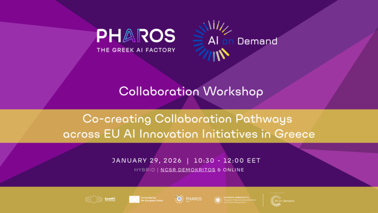 On 29 January 2026, PHAROS: The Greek AI Factory, in collaboration with the AI-on-Demand platform (AIoD), organised the workshop “Co-creating Collaboration Pathways across EU AI Innovation Initiatives in Greece”, held in a hybrid format, with on-site participation at the premises of NCSR Demokritos.